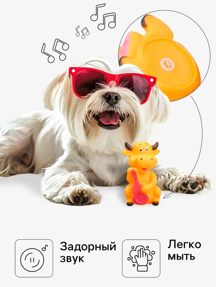 Игрушка изготовлена из безопасного материала и не предназначена для разгрызания. Во время игр виниловые игрушки можно жевать, благодаря этому они массируют дёсны и отчищают зубы собаки от налёта. Таким образом во время игр совмещается приятное с полезным.
