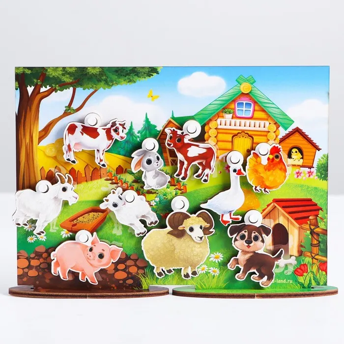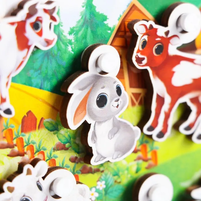 Суть игры: разместить фигурки на крючках на игровом поле.