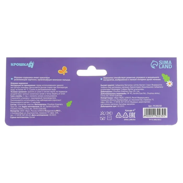 Игрушка - шуршалка «Кто как говорит?», с прорезывателем, от 3 мес. — Характеристики