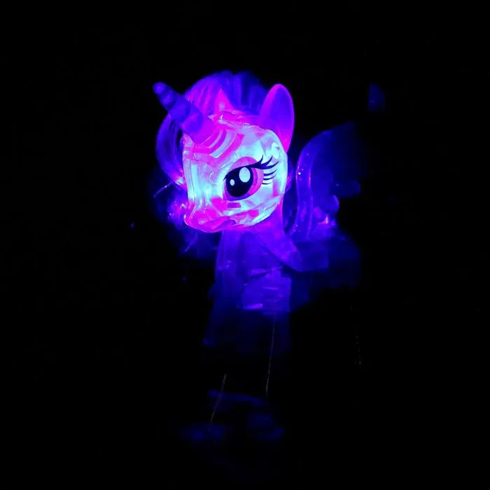 • Нажмите кнопку — пони засияет разноцветными огоньками, создавая волшебную атмосферу.