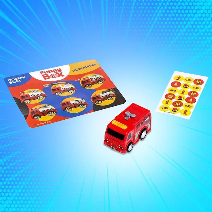 Игрушка - сюрприз Funny Box «Пожарная техника»: карточка, фигурка, лист наклеек — Характеристики