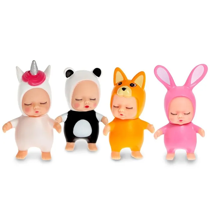 - Пупсики выполнены из пластика и имеют несъемную одежду. Каждый из них обладает уникальным дизайном и выразительными чертами лица.