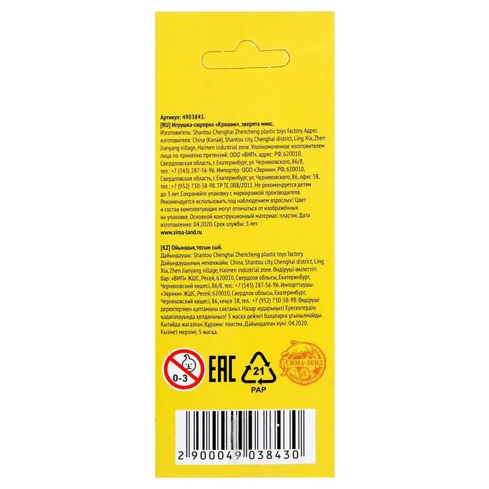 - Каждая игрушка — это маленький сюрприз. Внутри упаковки вы найдете милого пупсика высотой 8,5 см, одетого в костюм одного из забавных зверят.