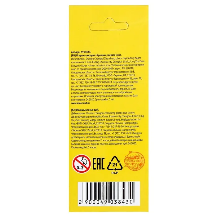 Игрушка-сюрприз «Крошик», зверята, МИКС — Характеристики