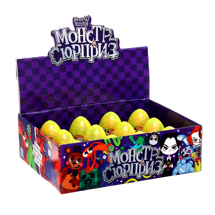 В пластиковом яйце «Монстр-сюрприз» вам попадётся фигурка в виде персонажа из популярной игры и наклейки! Яйцо с сюрпризом — это хороший способ порадовать своего ребёнка без повода, ведь все дети любят сюрпризы!