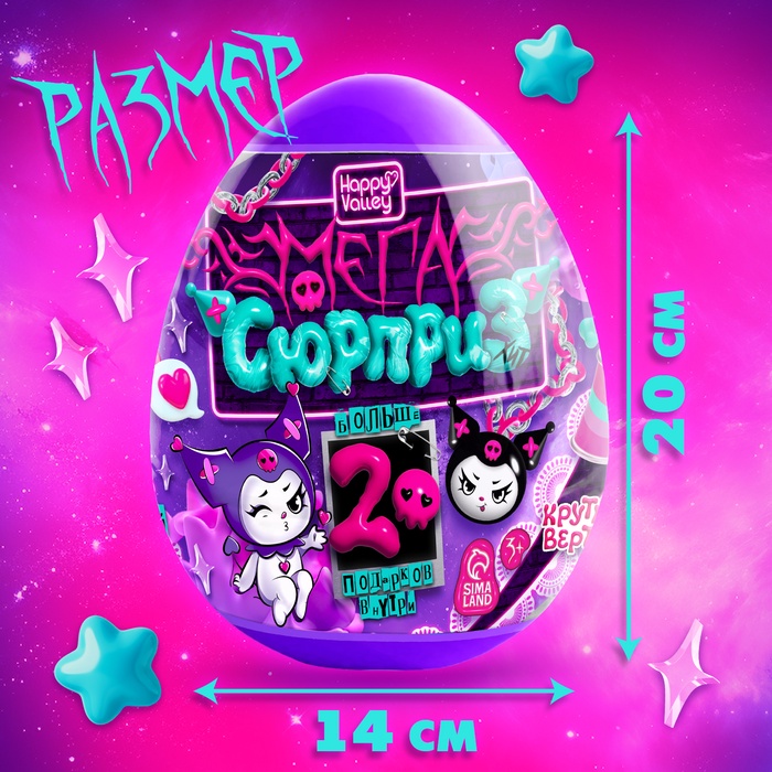 Игрушка - сюрприз в яйце «Мега-сюрприз. Чёрный кролик», больше 20 подарков, 20 см — Характеристики