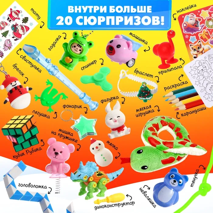 Игрушка-сюрприз в яйце «Новогодний мега-сюрприз» — это большой пластиковый контейнер, внутри которого спрятаны игрушки и аксессуары на новогоднюю тематику. Игрушка-сюрприз станет отличным подарком для детей, которые любят неожиданные находки и новогодние чудеса.