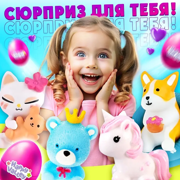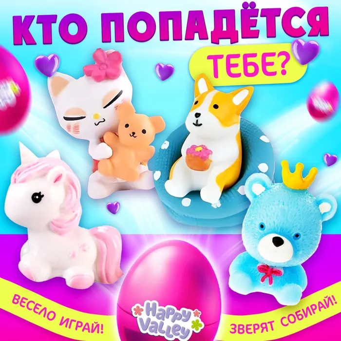 - Каждое яйцо содержит случайную игрушку-зверёнка
