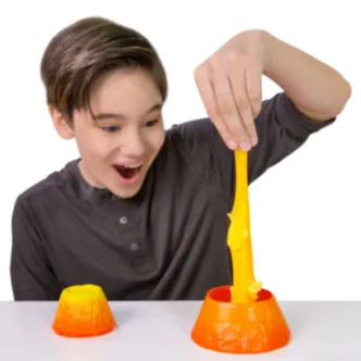 Внутри вулкана вы найдете слайм, в котором спрятаны элементы скелета динозавра. Малышам предстоит найти все детальки, чтобы собрать целое животное. Детишки получат новые знания о видах динозавров, а также поиграют со скользким и ярким слаймом.