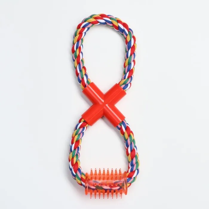 Игрушка тренировочная канатная "Восьмерка с зубочисткой", до 27 см, до 140 г, микс цветов — Характеристики