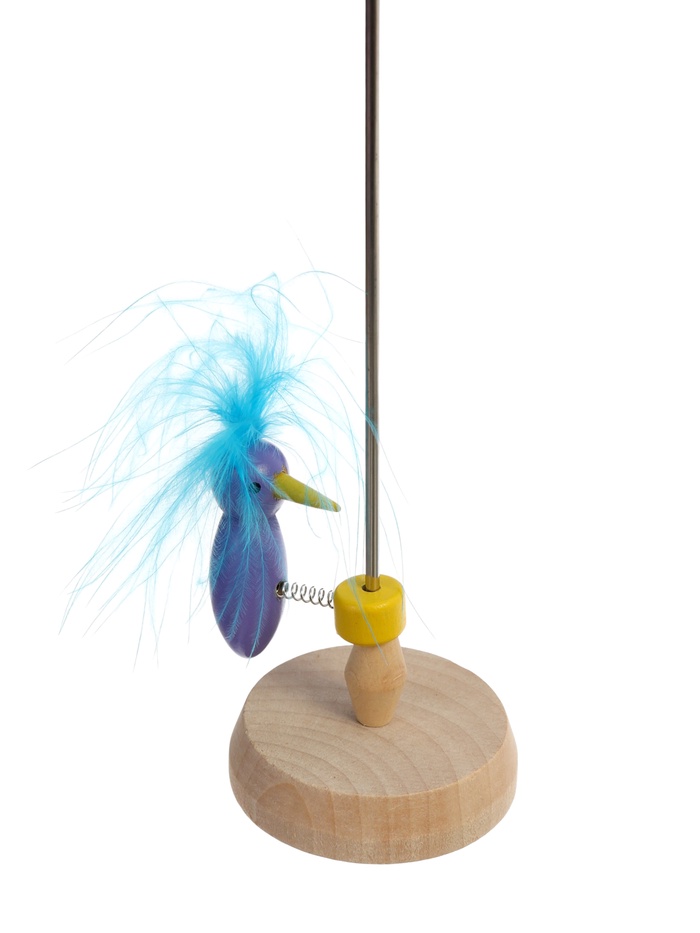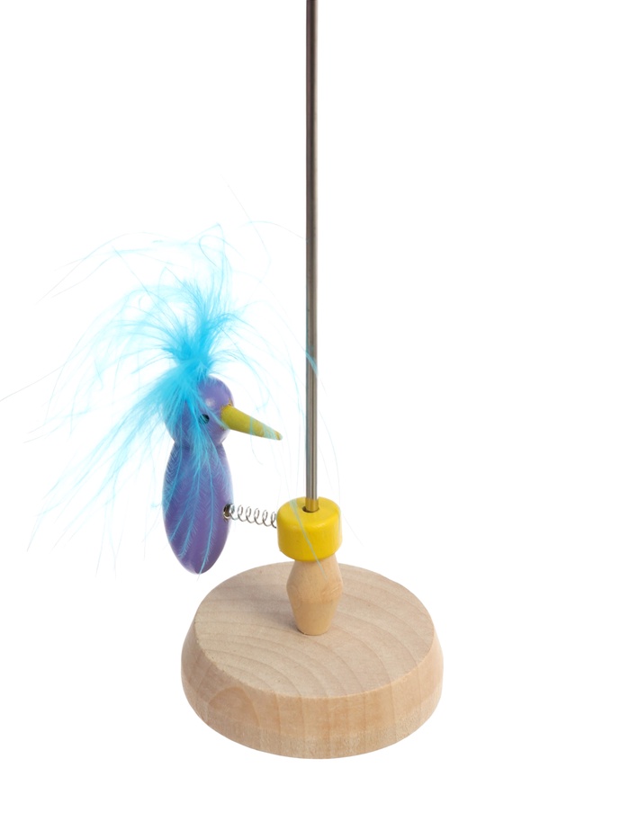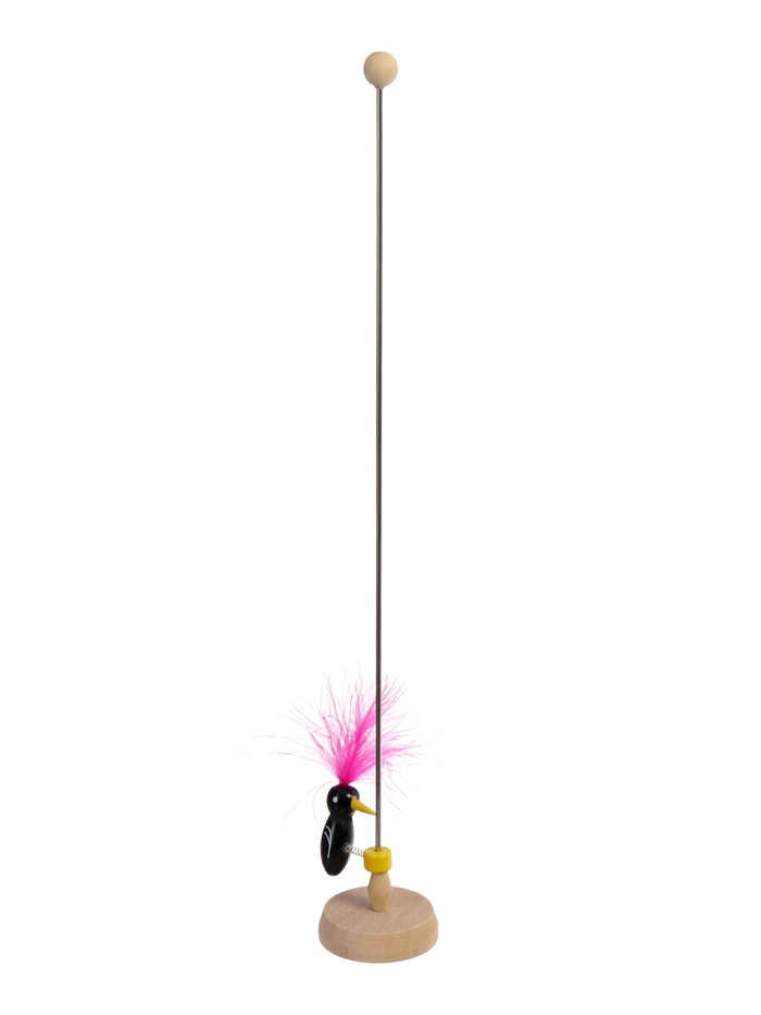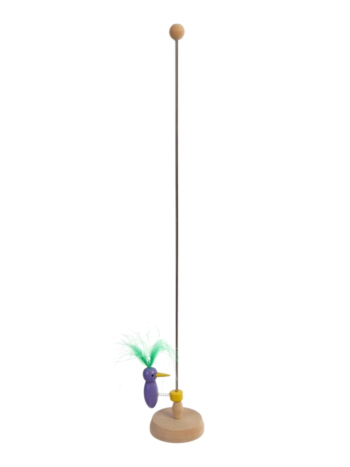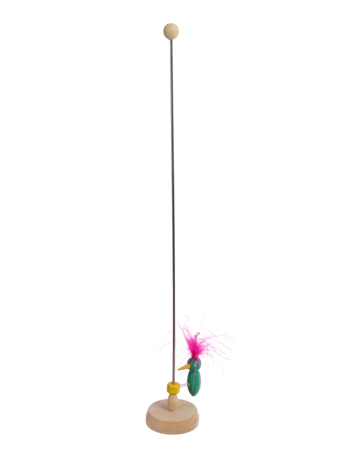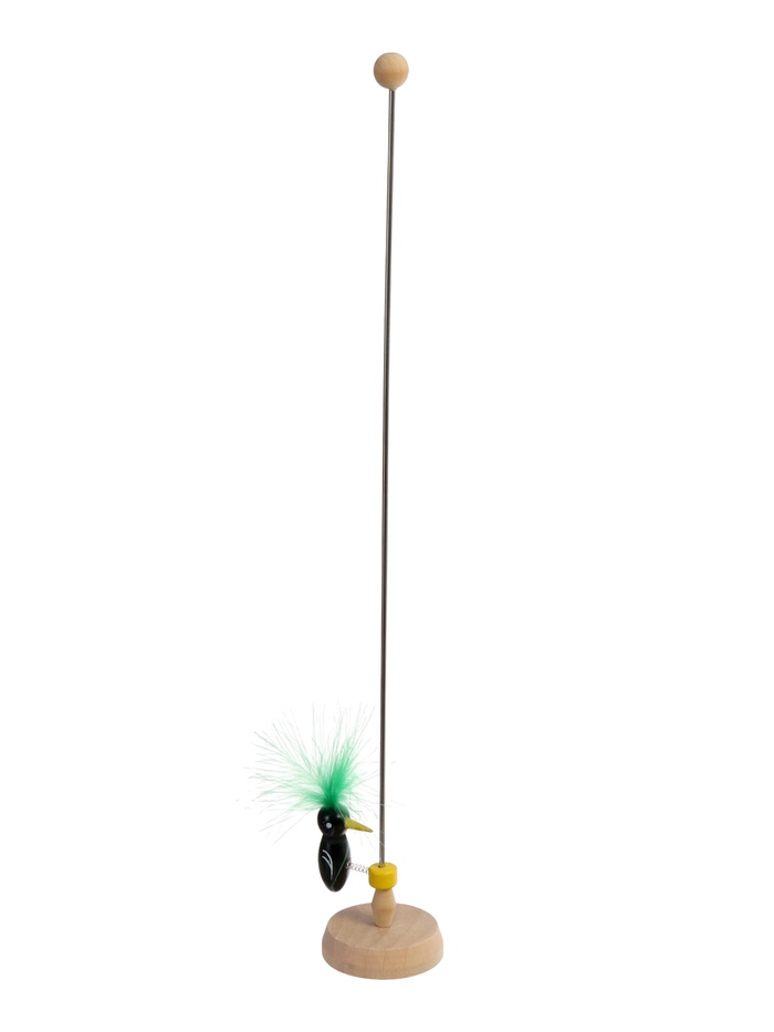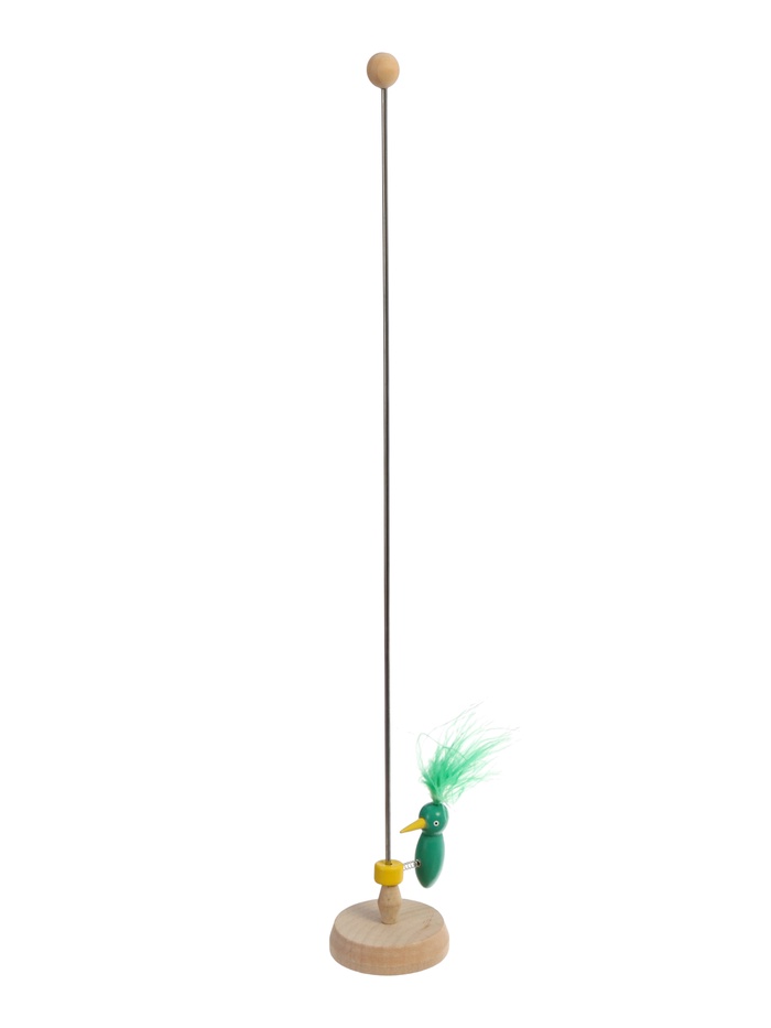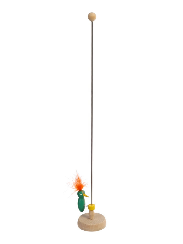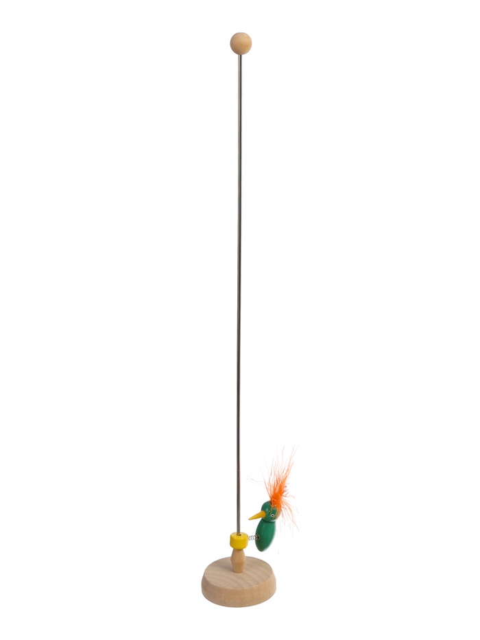 Игрушка сделана из прочного дерева и натуральных перьев птицы, которые окрашены безопасными компонентами.