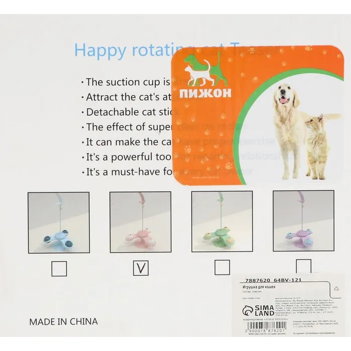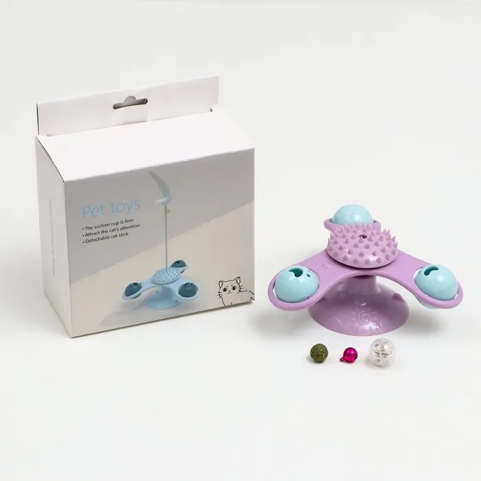 Игрушка-вертушка на присоске для кошек, 3 отсека с бубенчиками, микс цветов — Характеристики