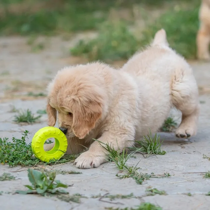 Игрушка не только развлекает щенка, но и помогает ему развивать челюстно-зубную систему, укреплять мышцы и улучшать координацию движений, легко моется и не теряет своих свойств при длительном использовании.