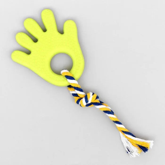 Игрушка жевательная с канатом для собак "Ладошка", 10 см, салатовая
