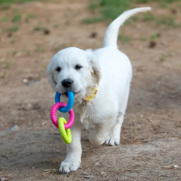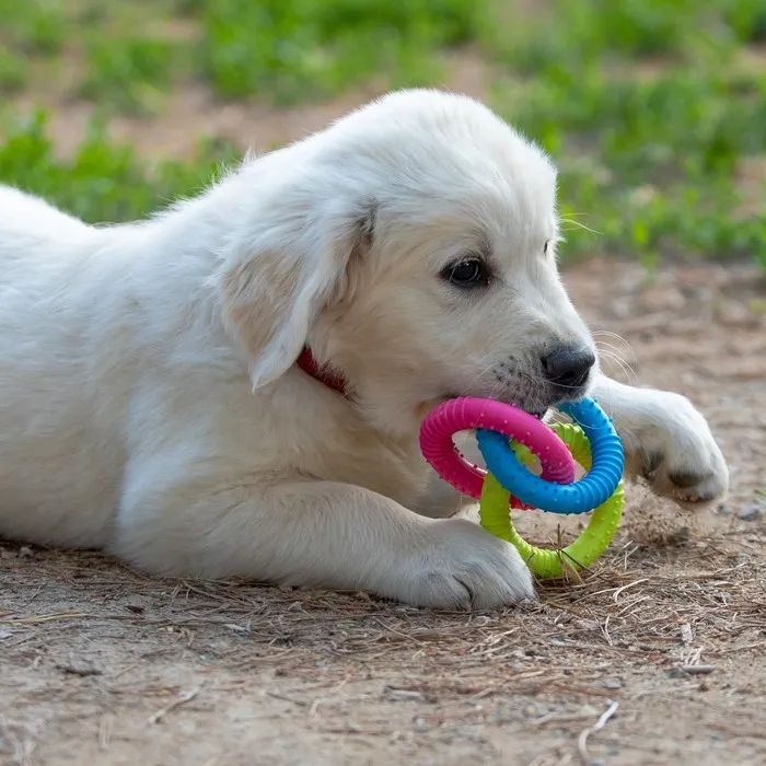 Игрушка не только развлекает щенка, но и помогает ему развивать челюстно-зубную систему, укреплять мышцы и улучшать координацию движений, легко моется и не теряет своих свойств при длительном использовании.