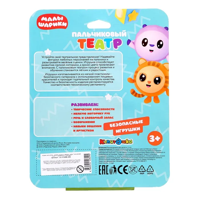 Игрушки для купания «Малышарики: Пальчиковый театр», набор 5 фигурок — Характеристики