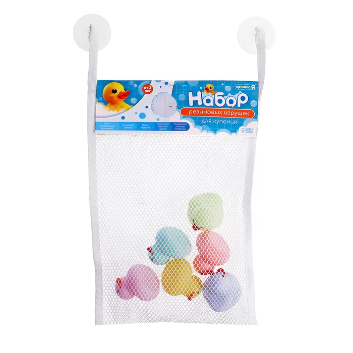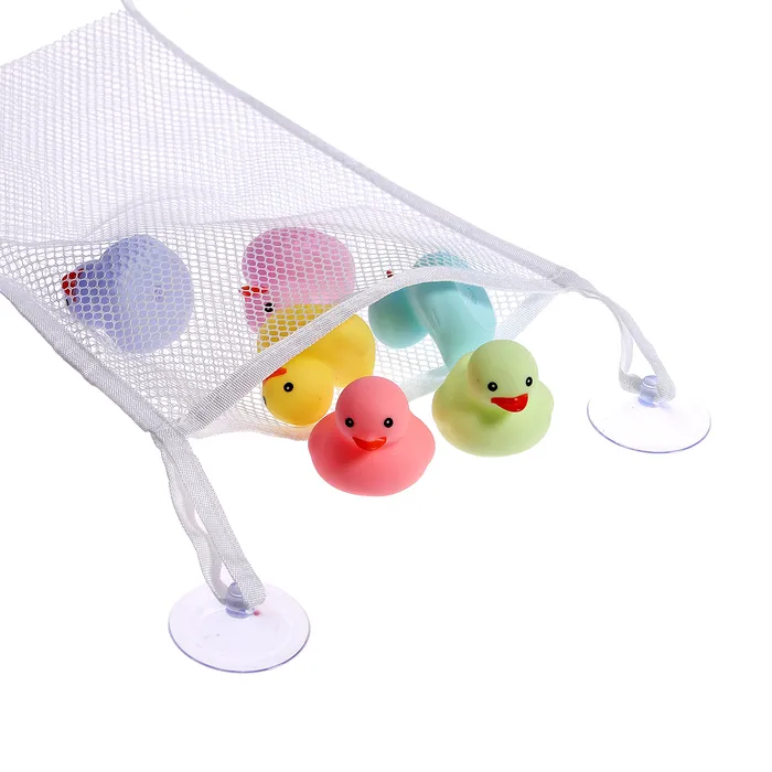 - В комплекте идёт специальная сетка с надёжными присосками, которая поможет вам удобно хранить игрушки после купания.