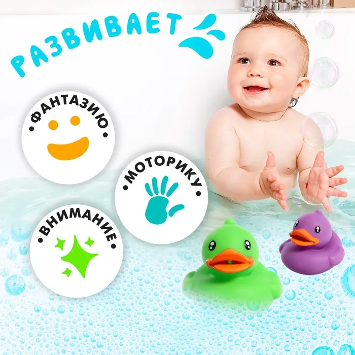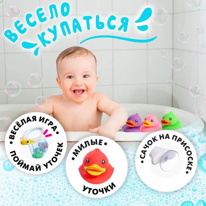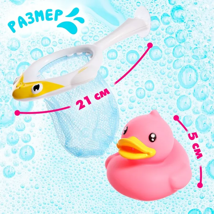 Игрушки для купания в ванне «Поймай уточку», 1 сачок на присоске, 3 уточки, МИКС — Характеристики