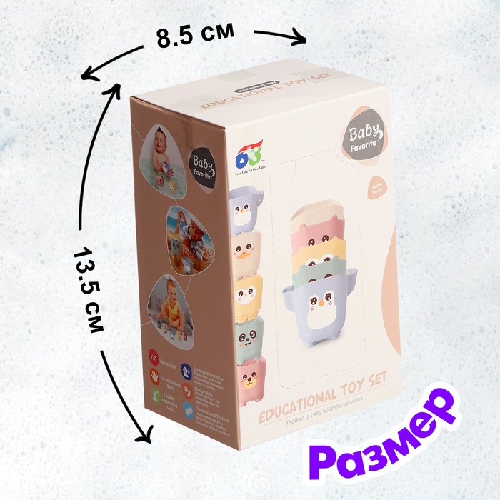 Игры с набором способствуют развитию мелкой моторики, координации движений и воображения. Переливая воду и исследуя стаканчики, малыш изучает понятия объёма и формы.