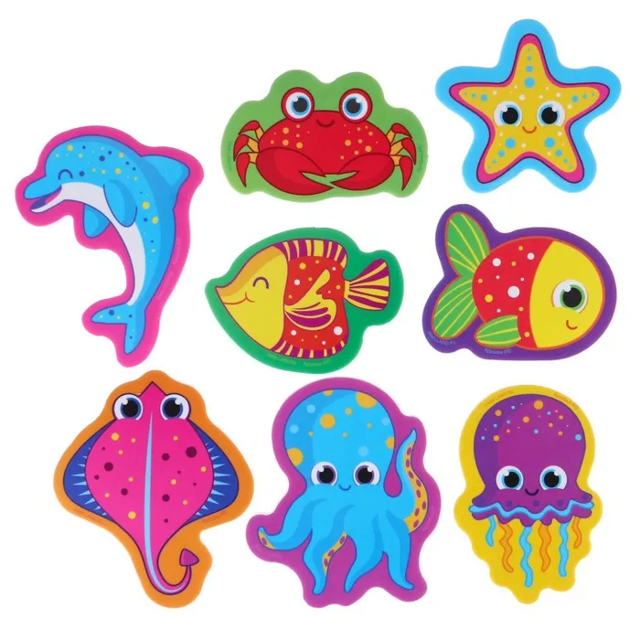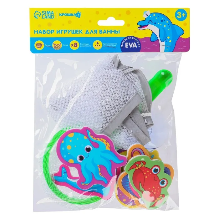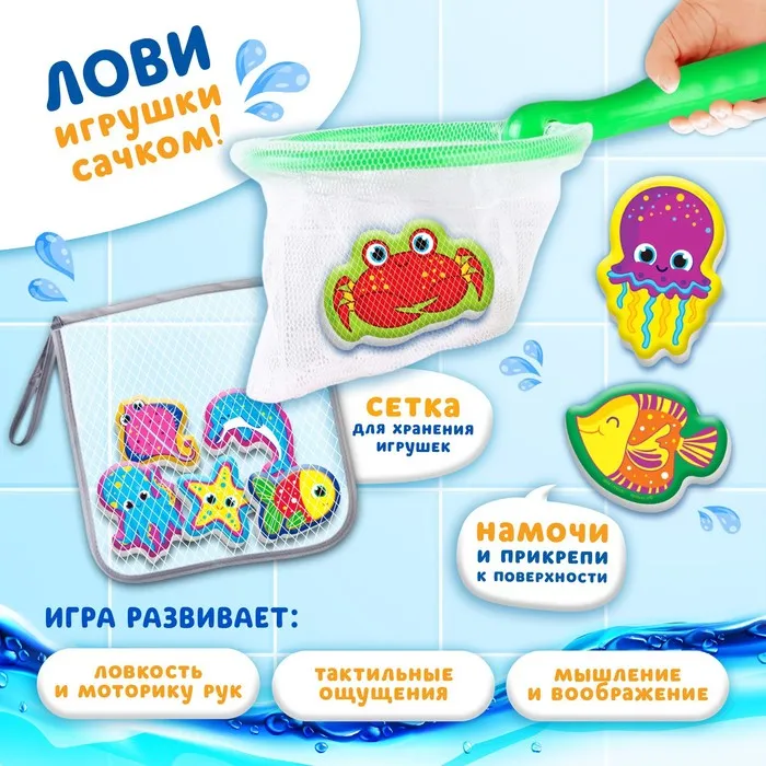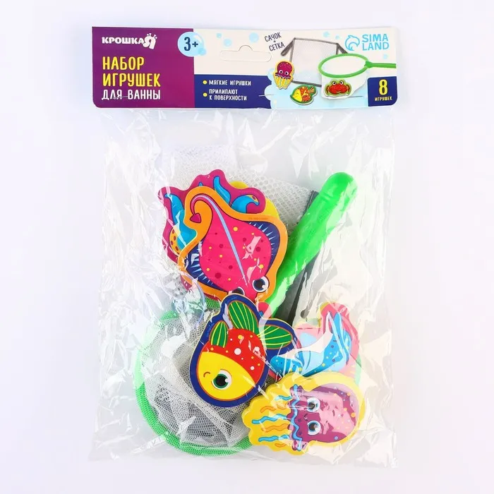Игрушки для ванны Крошка Я «Обитатели моря», в наборе 8 штук с сеткой, сачок — Характеристики