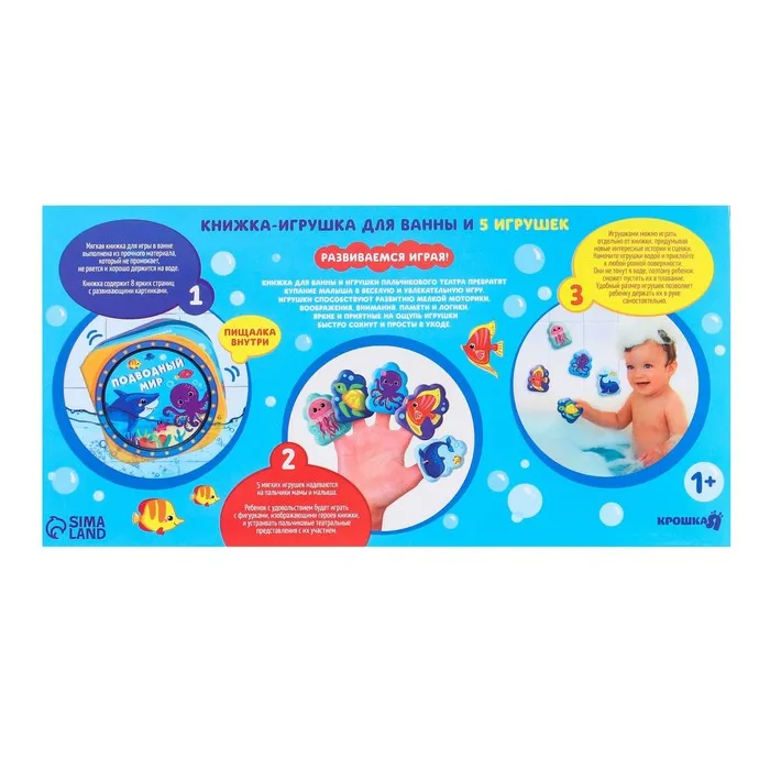 Игрушки для ванны Крошка Я «Подводный мир» книжка и пальчиковый театр, от 1 года — Характеристики