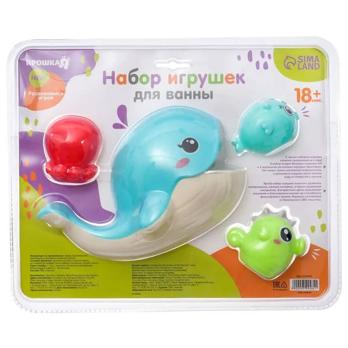 Игрушки для ванны Крошка Я «Поймай рыбку», ковш, брызгалки, в наборе 4 шт. — Характеристики