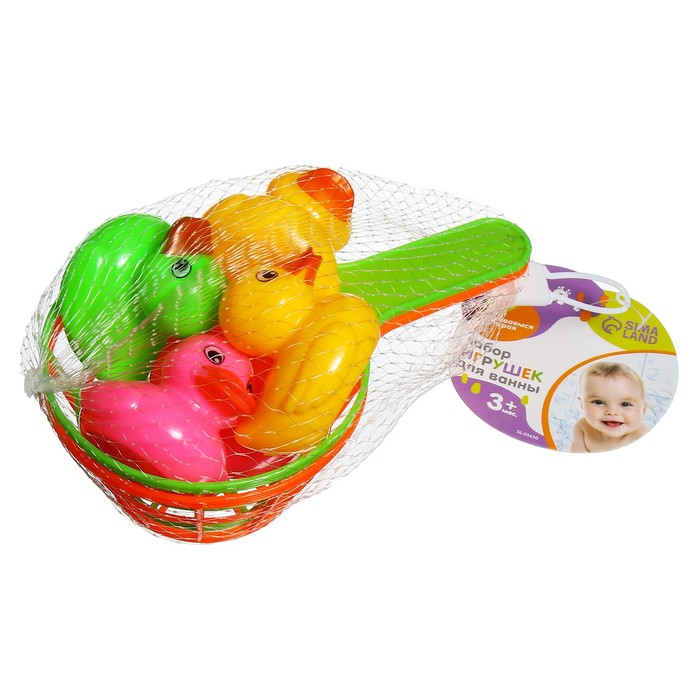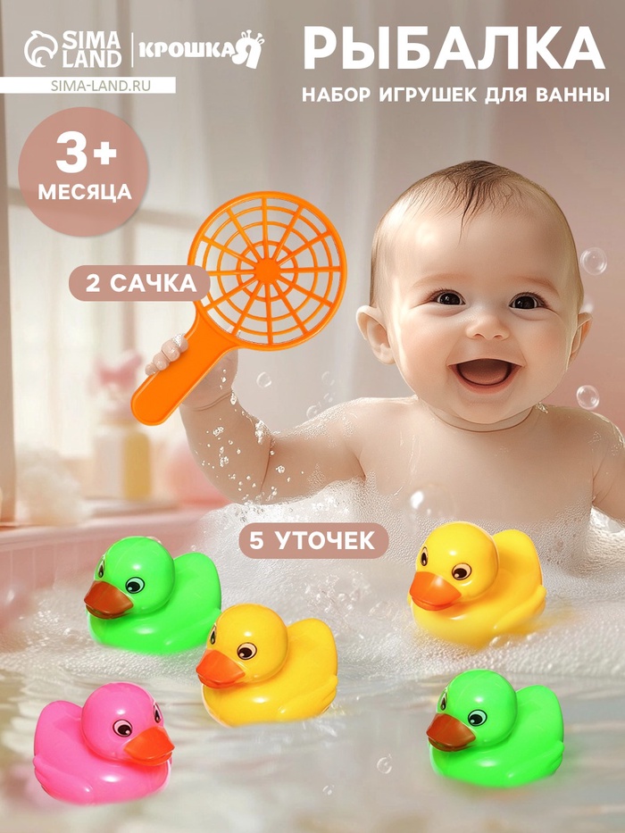 Игрушки для ванны Крошка Я «Рыбалка», 2 сачка, 5 уточек, в наборе 7 шт. — Характеристики