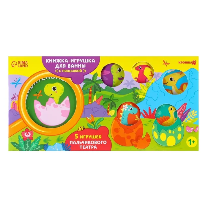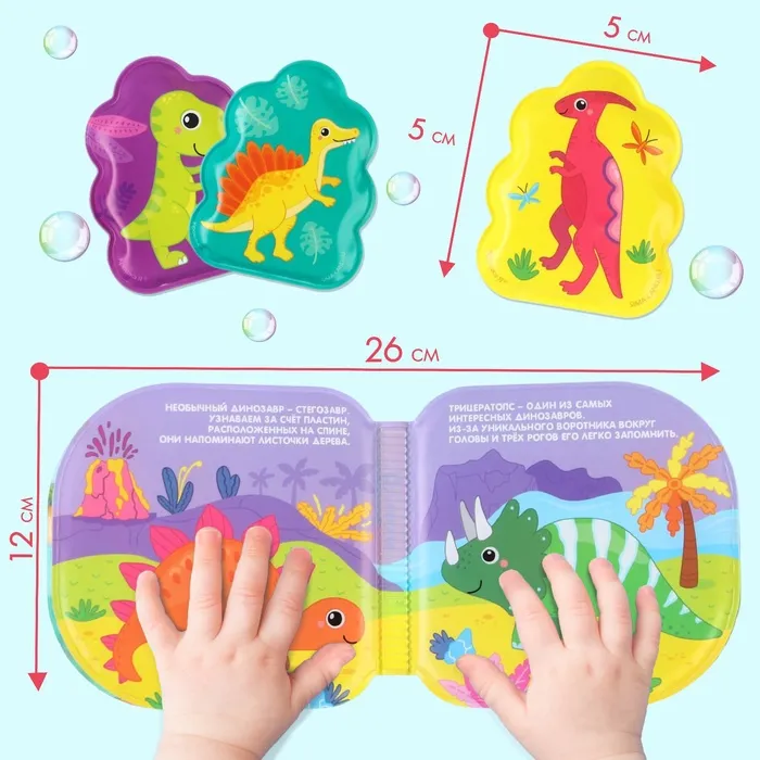Игрушки для ванны Крошка Я «Удивительный мир динозавров» в наборе: книжка и пальчиковый театр, от 1 года — Характеристики
