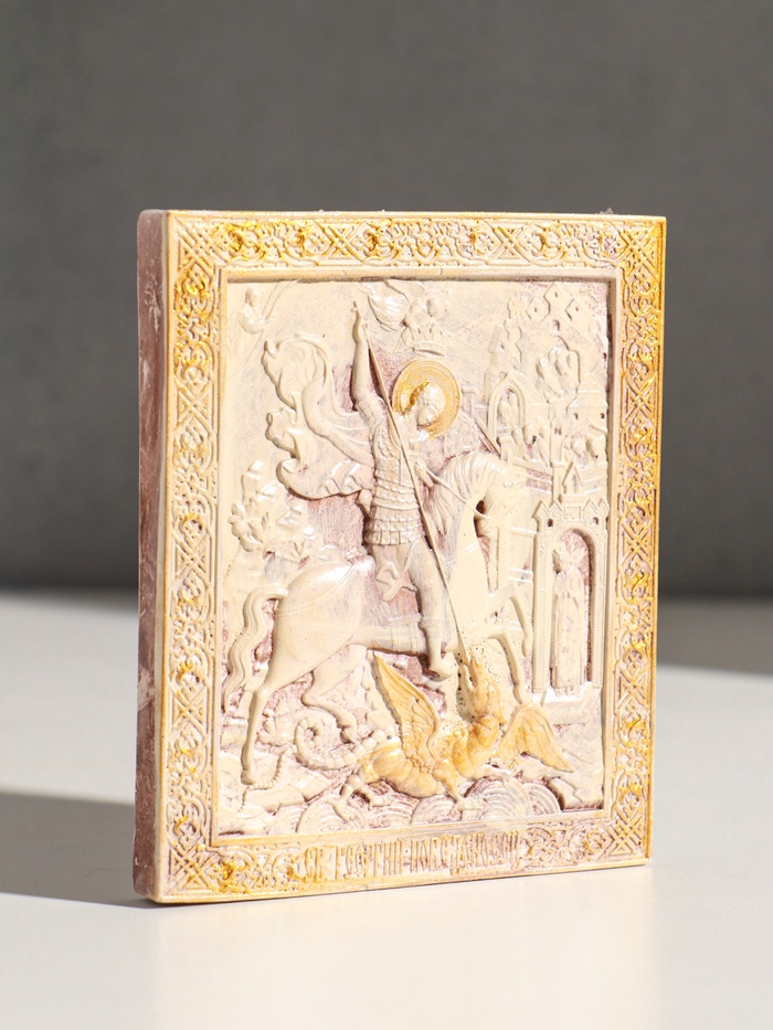 Эта икона с образом святого Георгия — больше, чем религиозный образ. Это личный оберег, созданный для ежедневного сопровождения в молитве. Компактный размер и готовый подвес делают её верным спутником в путешествии или на службе, а также центром домашнего молитвенного уголка.