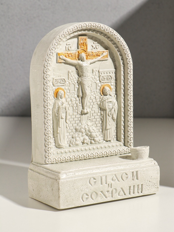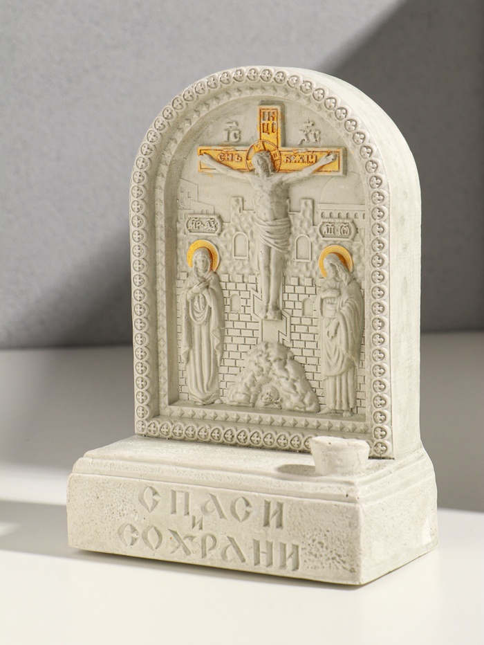 Икона настольная с подставкой под свечу «Распятие», гипс, роспись, 18×13×7 см