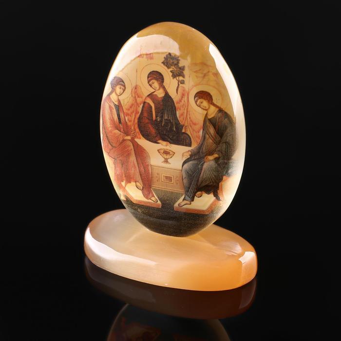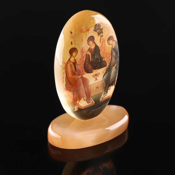 Икона «Святая Троица», овал на поставке с фоном, настольная, селенит — Характеристики