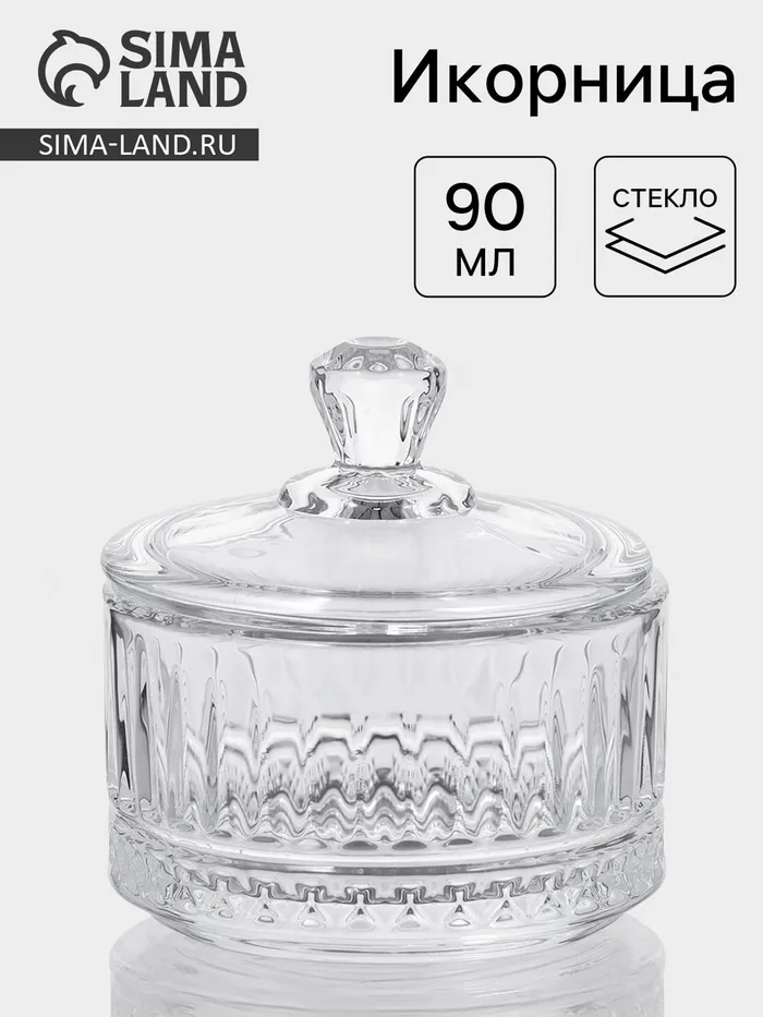 Икорница «Элизия», 90 мл, 6.8×7 см, с крышкой, стекло, прозрачная — Характеристики