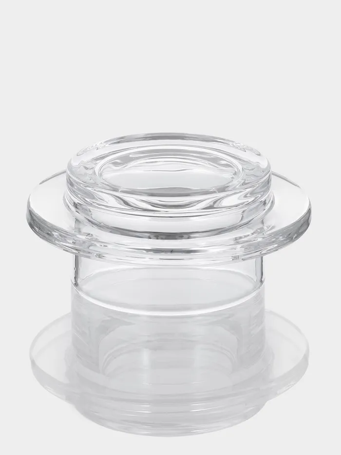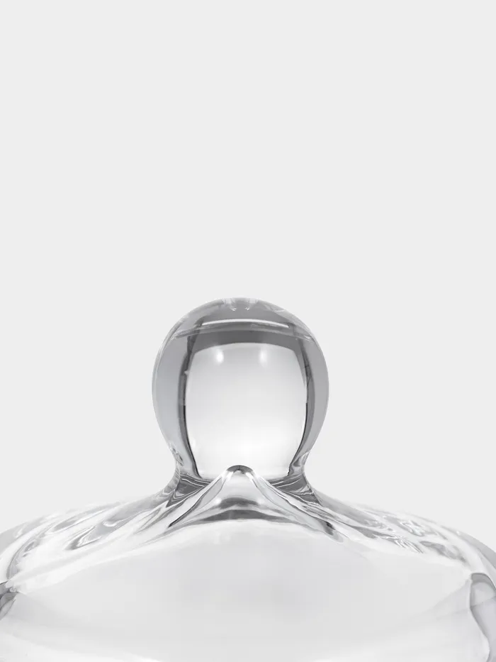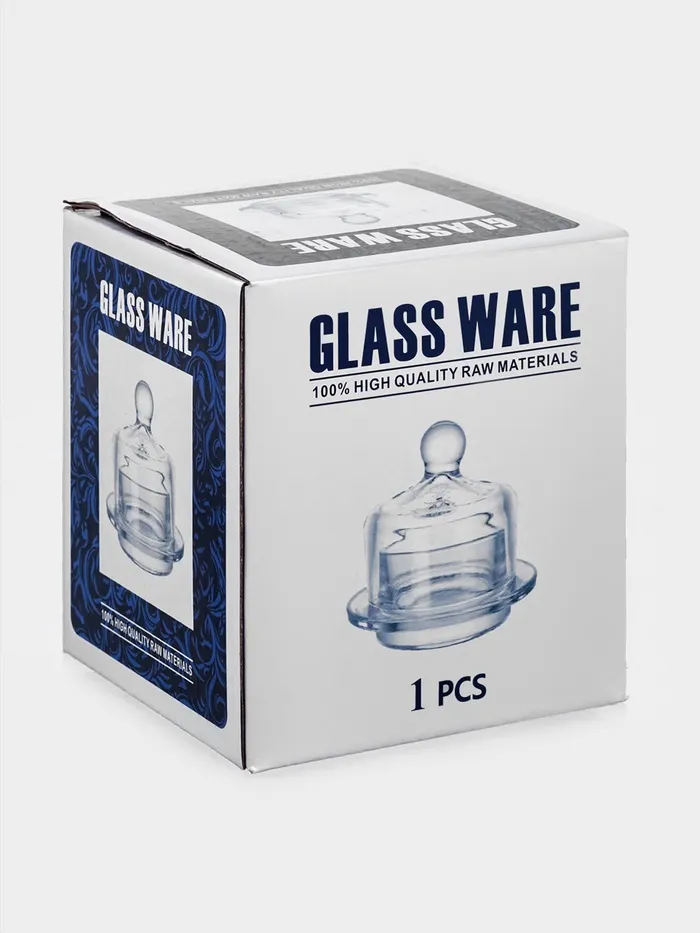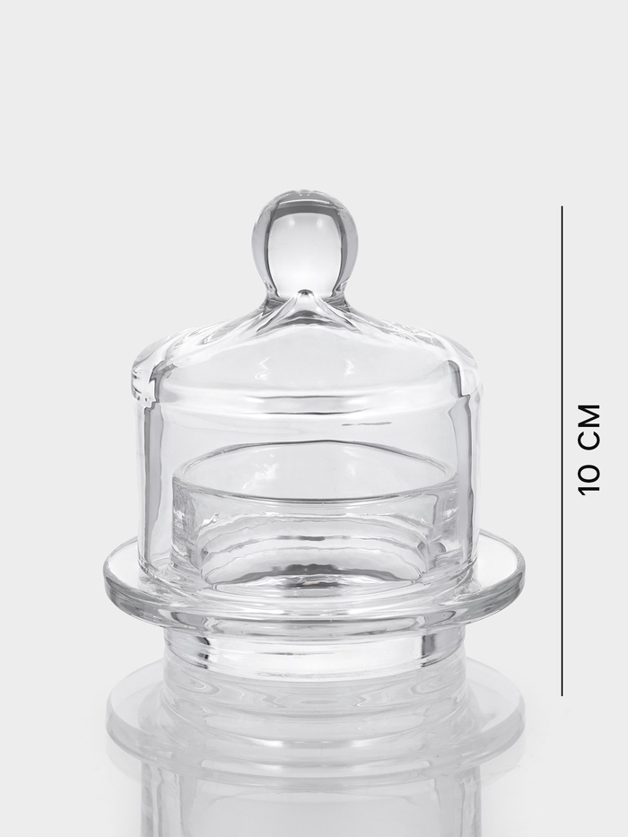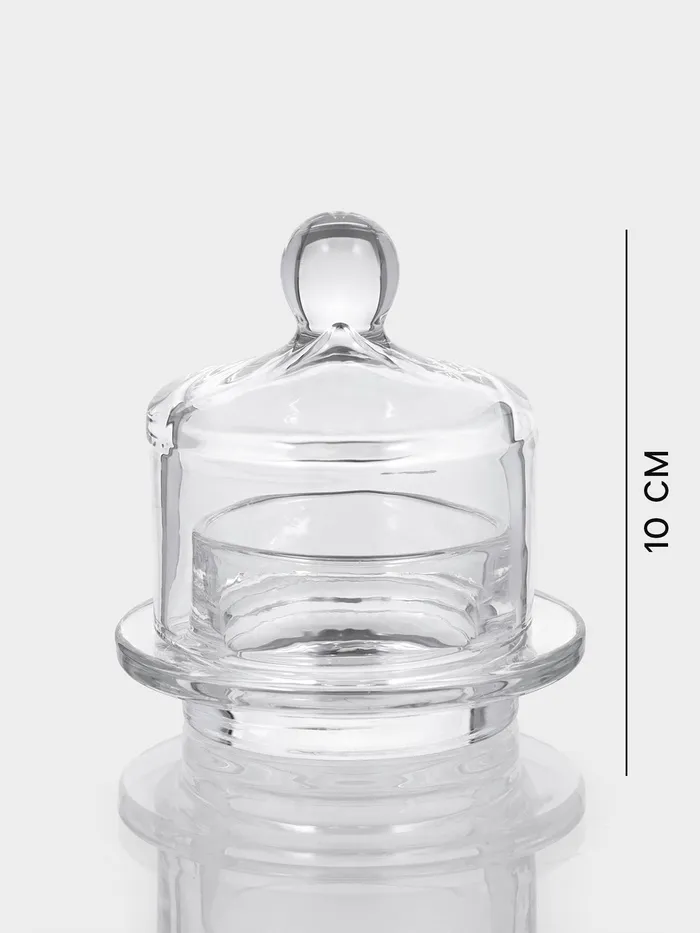 Прозрачная стеклянная икорница с крышкой — ёмкость, в которой деликатесы остаются свежими, а стол выглядит эффектно. Круглая форма и куполообразная крышка создают эффект законченной подачи.