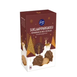 Маленькие имбирные пряники просто восхитительны, покрытые натуральным молочным шоколадом Fazer. Отлично подходят для рождественских праздников. Имбирные пряники идеально сочетаються с глинтвейном. Красивая упаковка подходит для рождественского подарка.