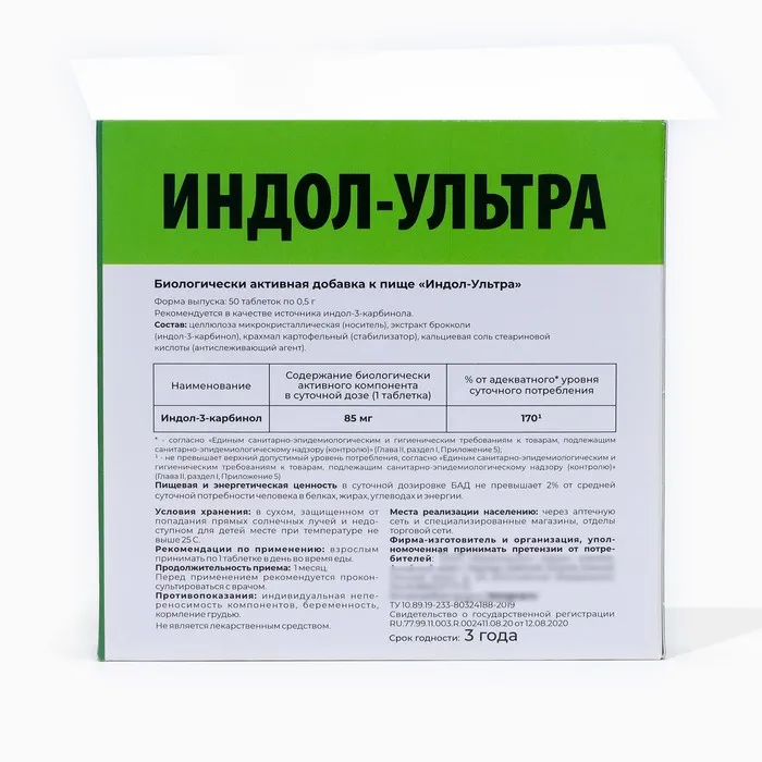 Индол-Ультра, 50 таблеток по 500 мг, женское здоровье — Характеристики