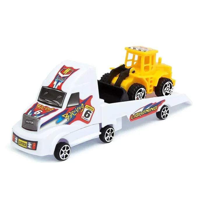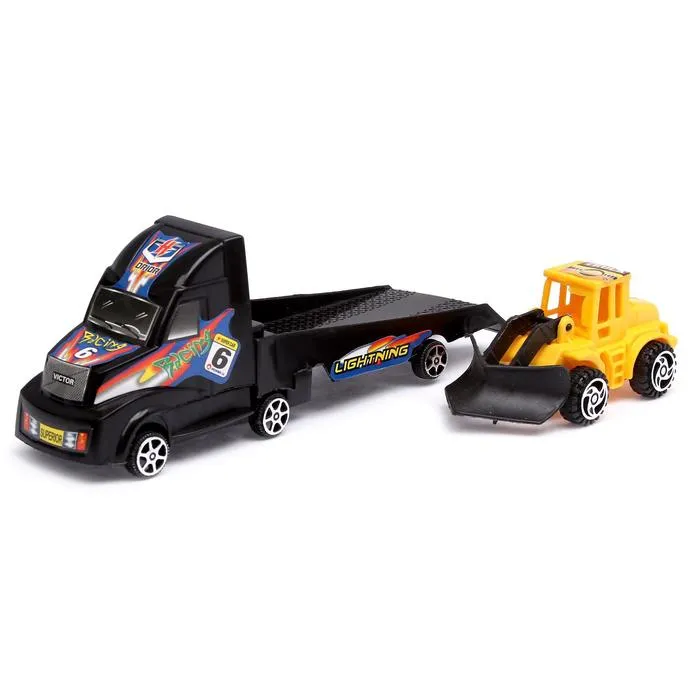 «Эвакуатор» — это первоклассный набор для трудолюбивого малыша. В комплект входит сразу два технических средства: тягач с инерционным механизмом и трактор с глубоким поднимающимся ковшом. Завершите строительно-ремонтные работы, а затем закатите погрузчик на широкую платформу. Теперь можно выдвигаться к следующему объекту!