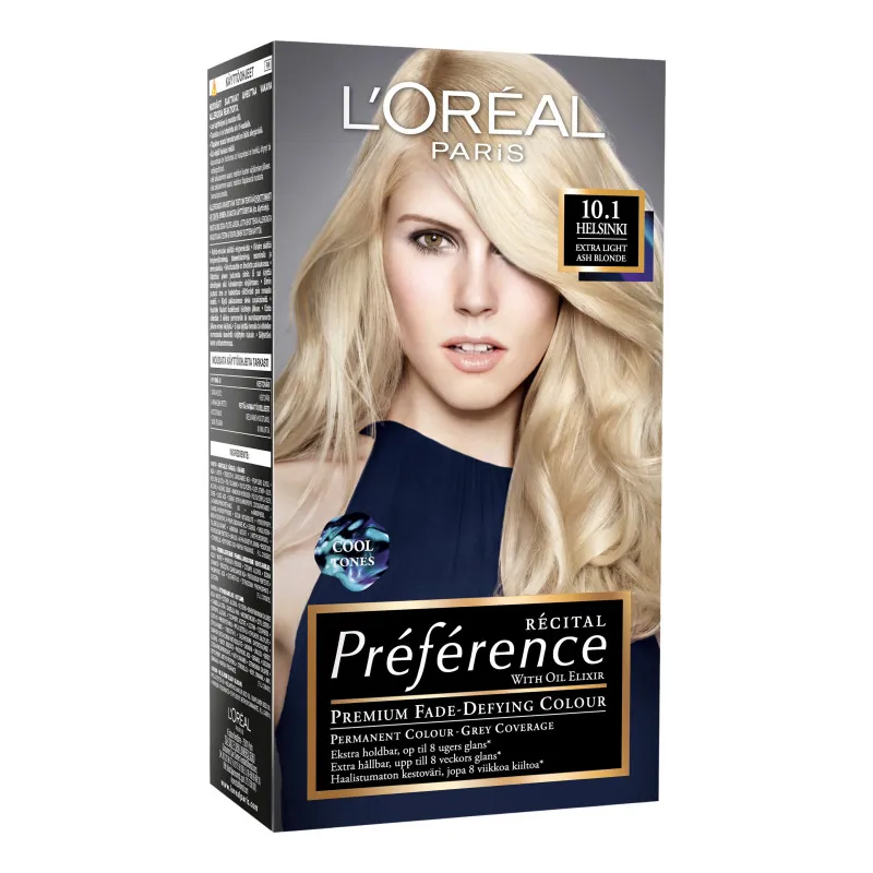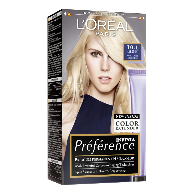 С помощью стойкой краски для волос L'Oreal Paris Preference Infinia вы получите насыщенный и длительный цвет! 10.1 Helsinki Extra Light Ash Blonde — это чрезвычайно светлый пепельный оттенок, который благодаря инновационной технологии окрашивания надежно запечатывается внутри волоса. Вы получите великолепный и устойчивый цвет, который обеспечит идеальный блеск до восьми недель! Специальный кондиционер Color Lock, наносимый после окрашивания, содержит ухаживающий за волосами витамин E и защищает их от ультрафиолетовых лучей солнца. Краски L'Oreal Paris Preference Infinia также обеспечивают до 100% покрытие седых волос. После окрашивания волосы ощущаются мягкими и полными жизни!