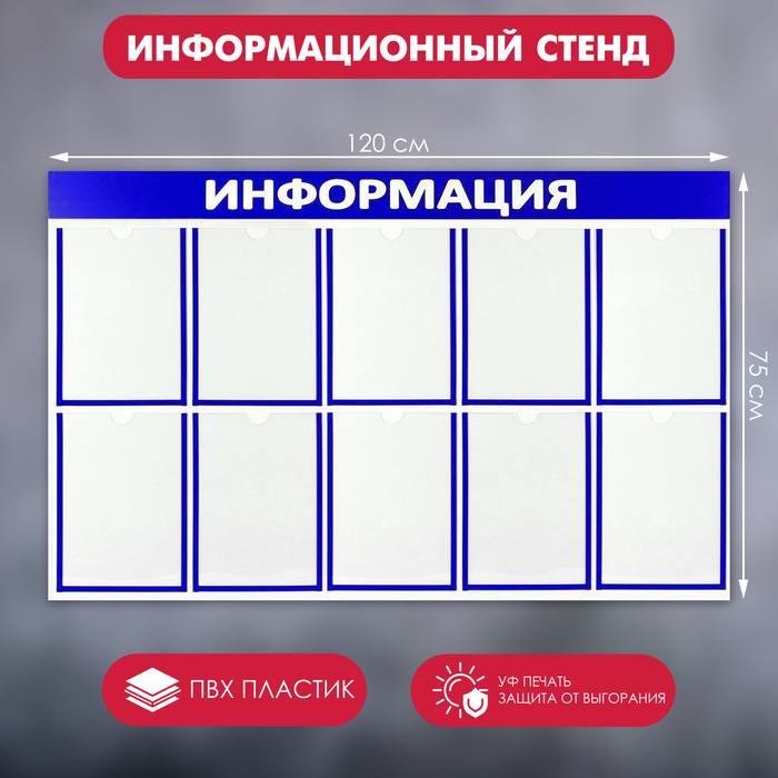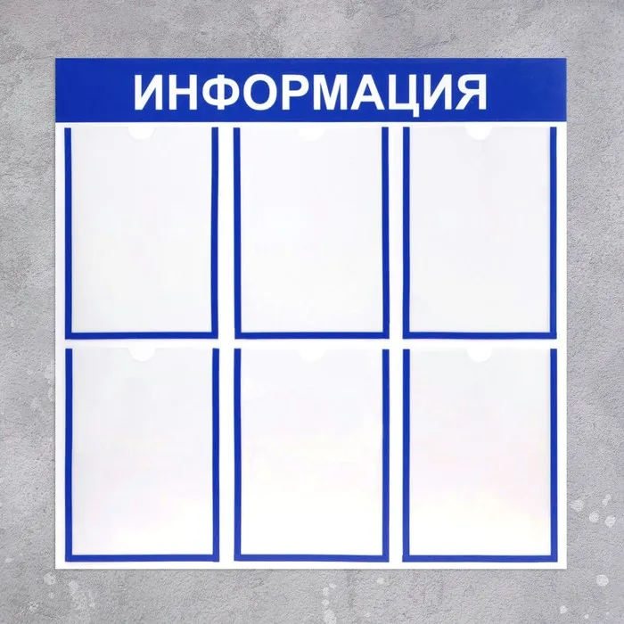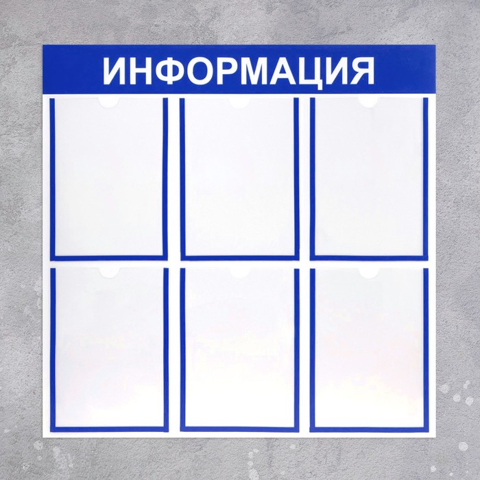 Информационный стенд «Информация» 6 плоских карманов А4, цвет синий — Характеристики