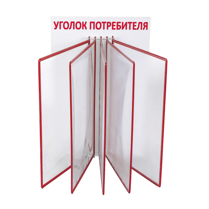 Информационный стенд «Уголок потребителя» перекидная система на 5 карманов А4, красный — Характеристики