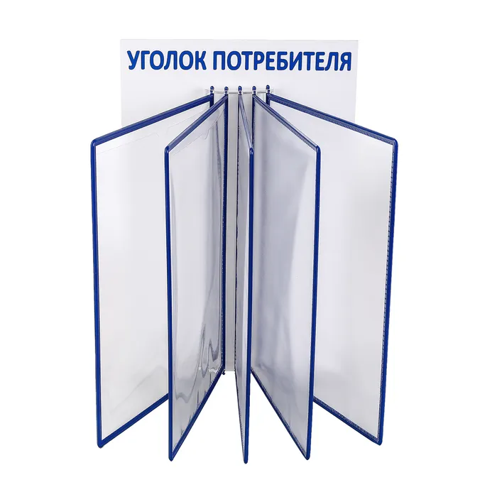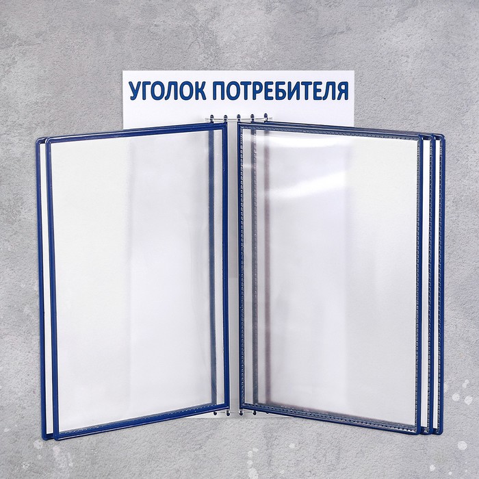 Информационный стенд «Уголок потребителя» перекидная система на 5 карманов А4, синий — Характеристики
