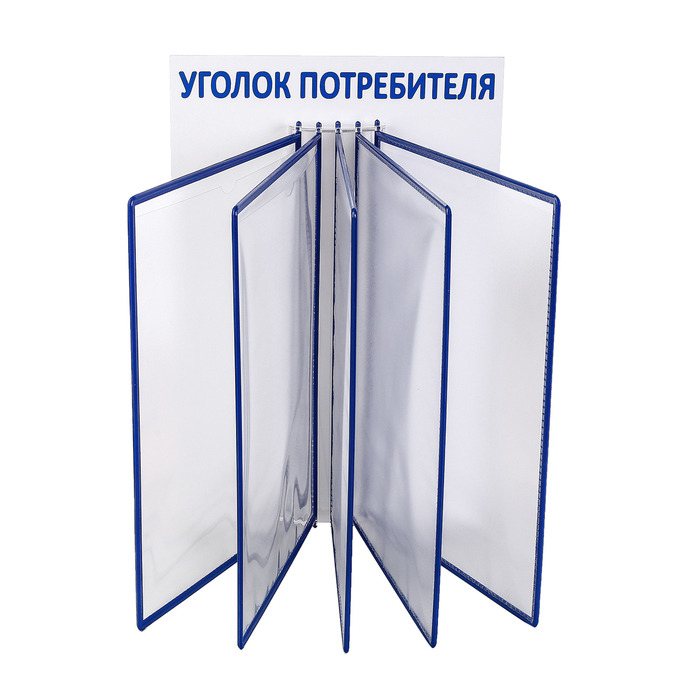 Информационный стенд «Уголок потребителя» перекидная система на 5 карманов А4, синий