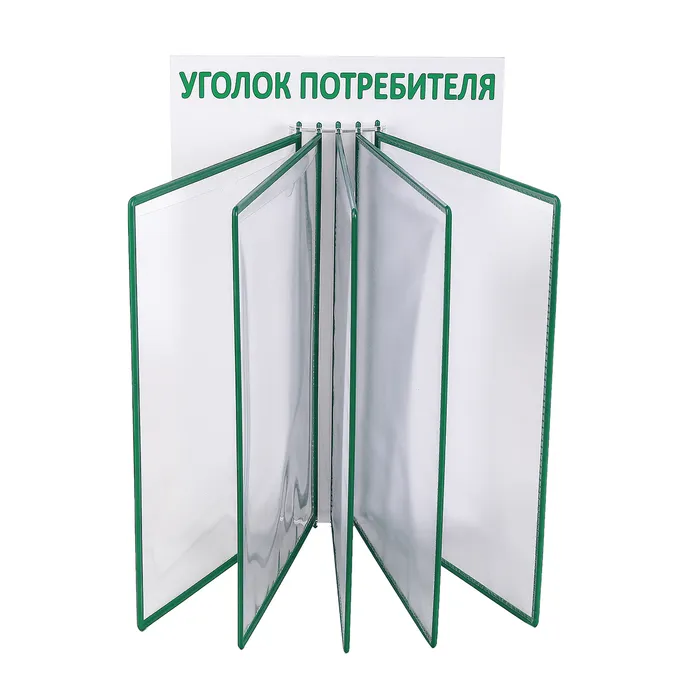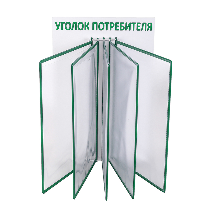 Информационный стенд «Уголок потребителя» перекидная система на 5 карманов А4, зелёный