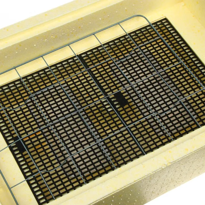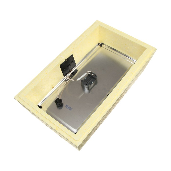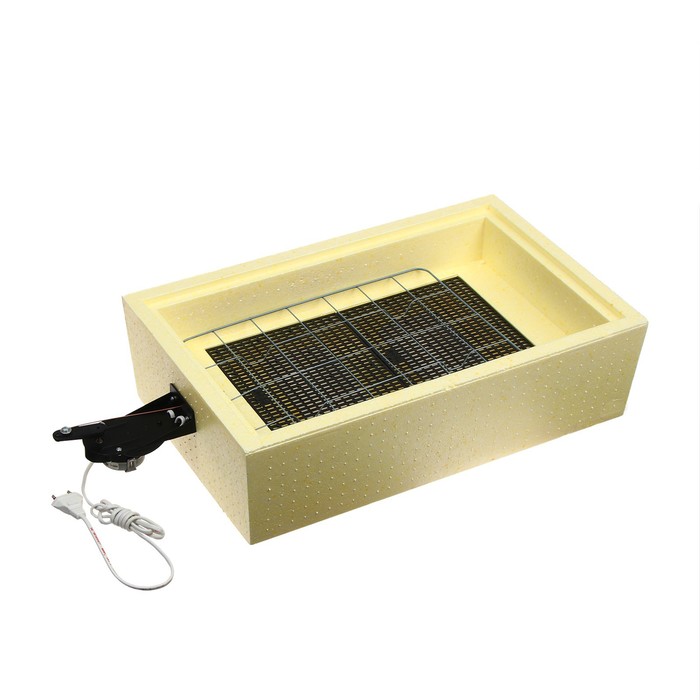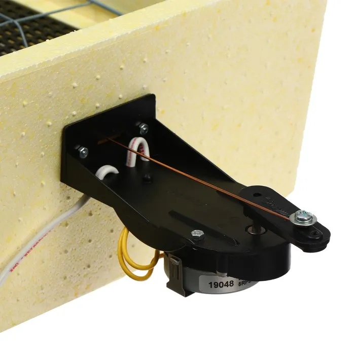 Приспособление оснащено поворотным устройством, которое очень медленно (незаметно для глаза) будет перекатывать яйца (на 180°) 10 раз в сутки.
