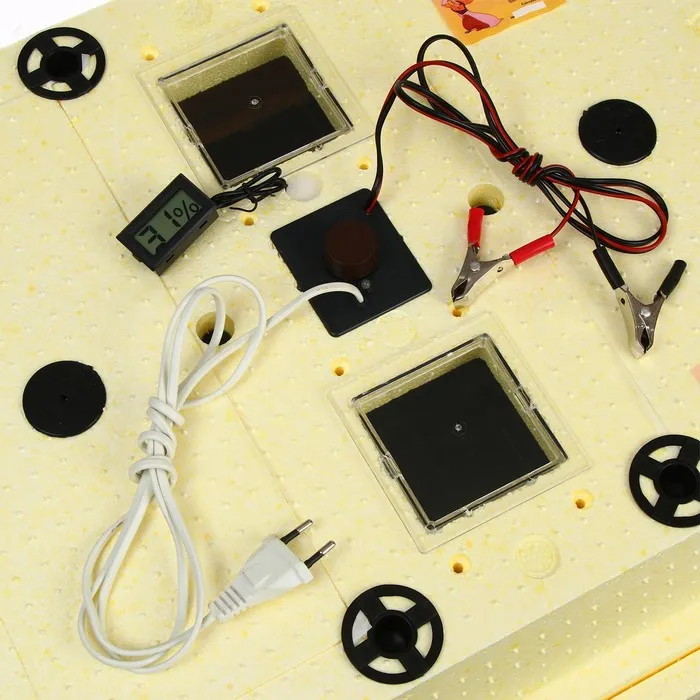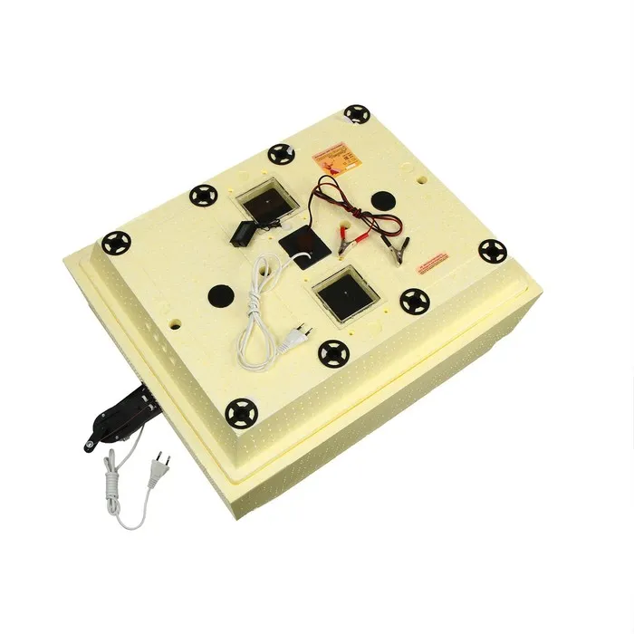 Прибор оснащён терморегулятором с датчиком на крышке. При изменении внешних условий он автоматически поддерживает заданную температуру внутри инкубатора: включает или отключает нагреватель.