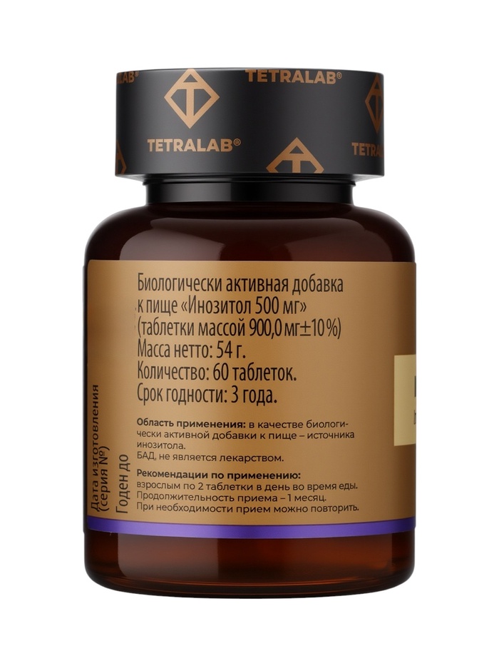 Инозитол TETRALAB, поддержка работы мозга, нервной системы и обмена веществ, 500 мг, 60 таблеток — Характеристики