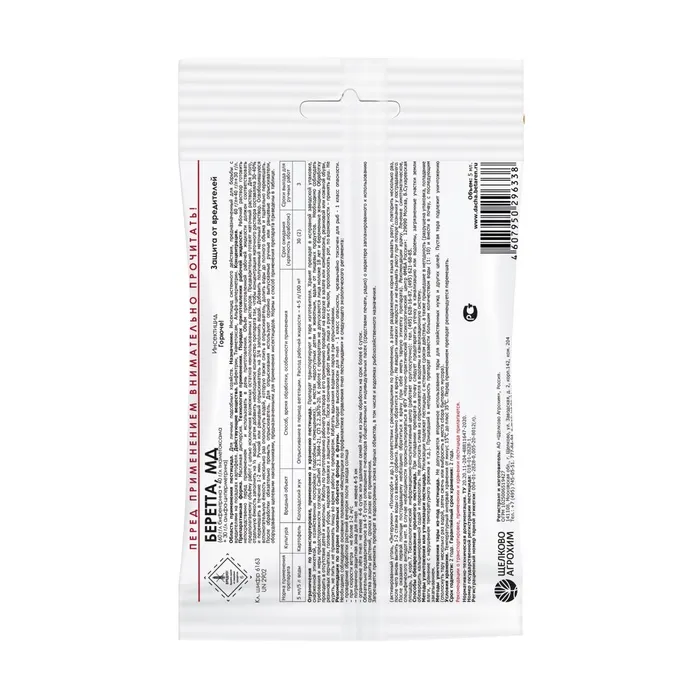 Сочетание трех действующих веществ позволяет бороться с наиболее широким спектром вредителей, обеспечивая гарантированный результат в течение продолжительного времени за счет системных свойств, трансламинарного эффекта и контактно-кишечного действия – суммарное защитное действие до 30 дней.