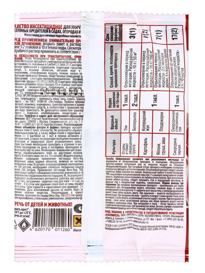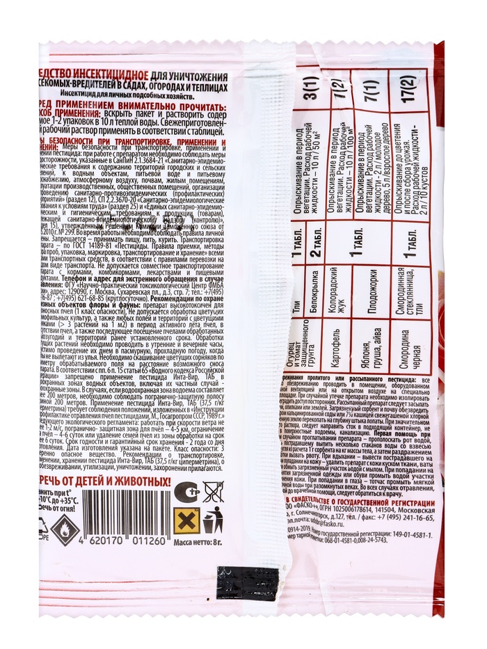 Инсектицид "Инта-Вир" от комплекса вредителей, таблетка, 8 г — Характеристики
