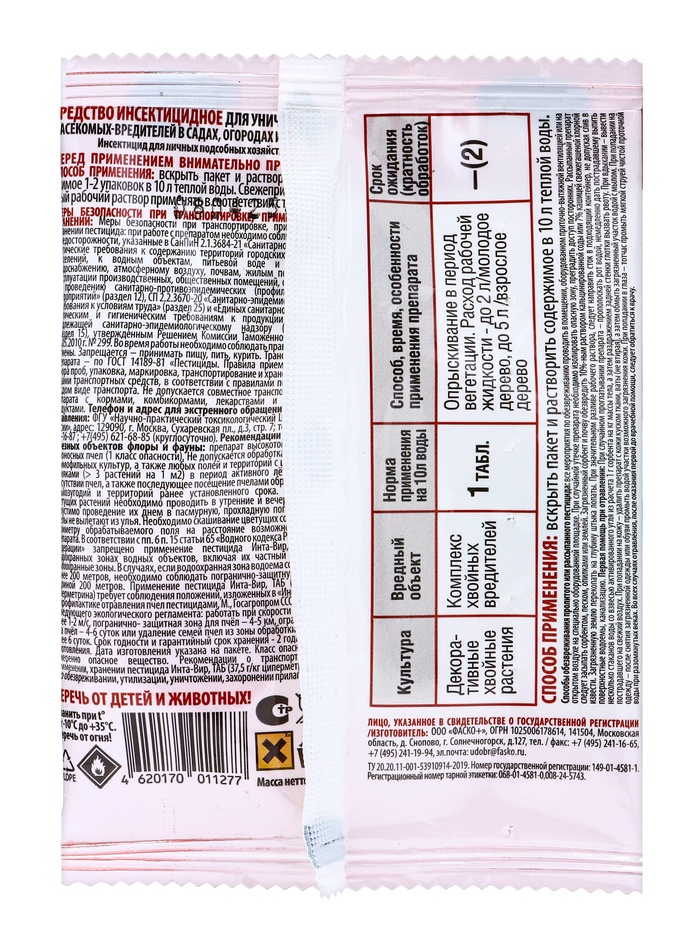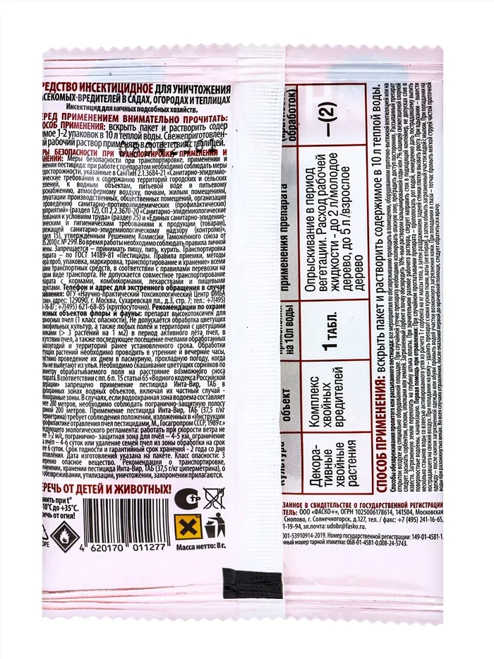 Инсектицид "Инта-Вир" от пилильщика, таблетка, 8 г — Характеристики