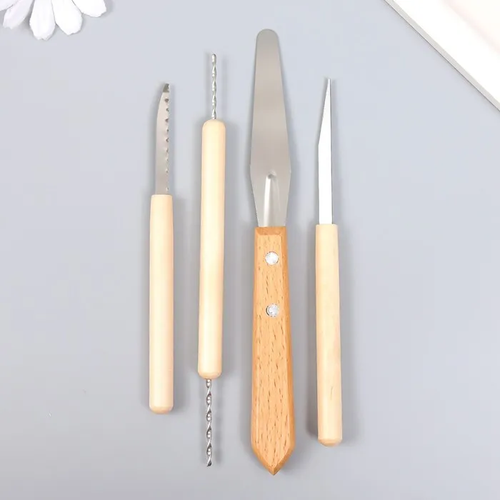 Инструменты для работы с глиной набор 4 шт. дерево, металл, h=12.5 см; 13.5 см; 17 см; и 17.5 см