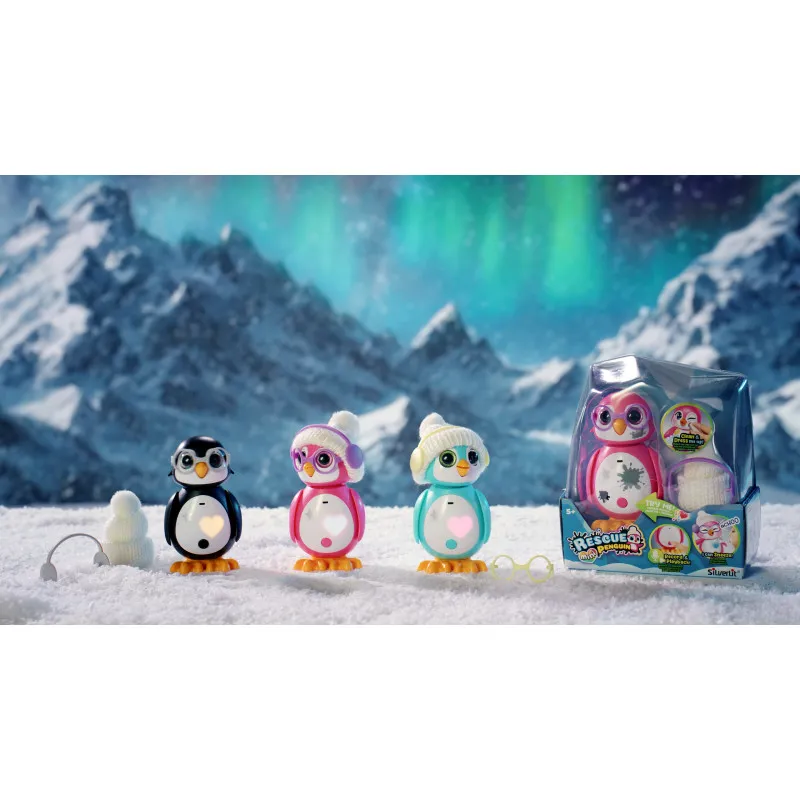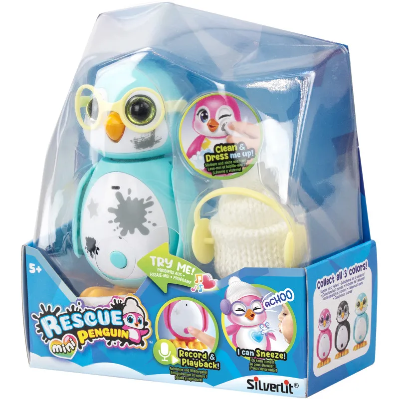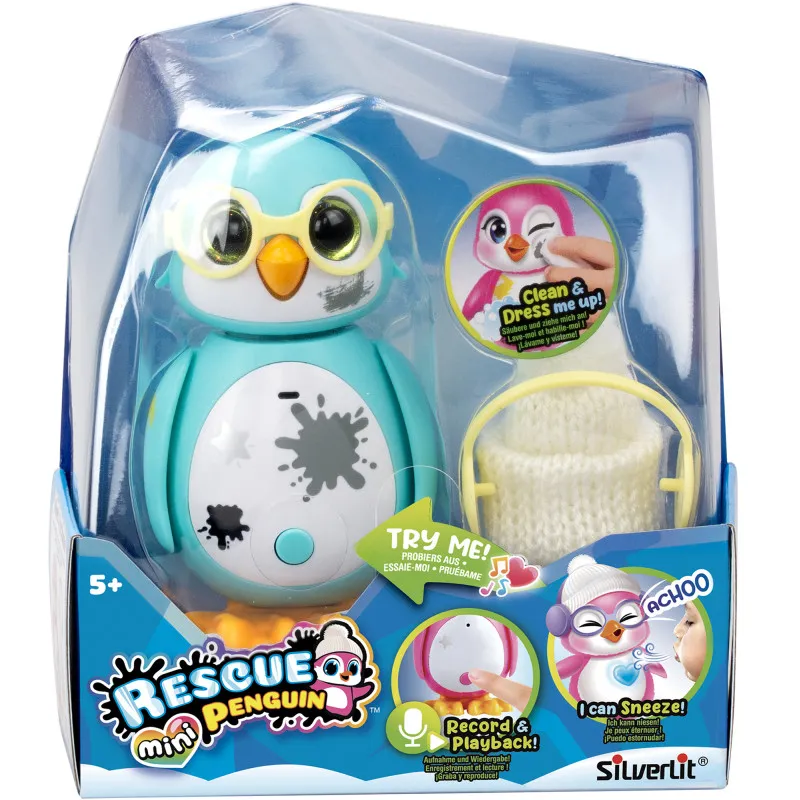 Rescue Penguin Mini – это электронный интерактивный питомец. Заботьтесь, одевайте, кормите и ухаживайте за своим маленьким пингвином и узнавайте его уникальные особенности. Игрушка оснащена функциями звука, света и записи. Вместе с пингвином идут шляпа, наушники и очки.
